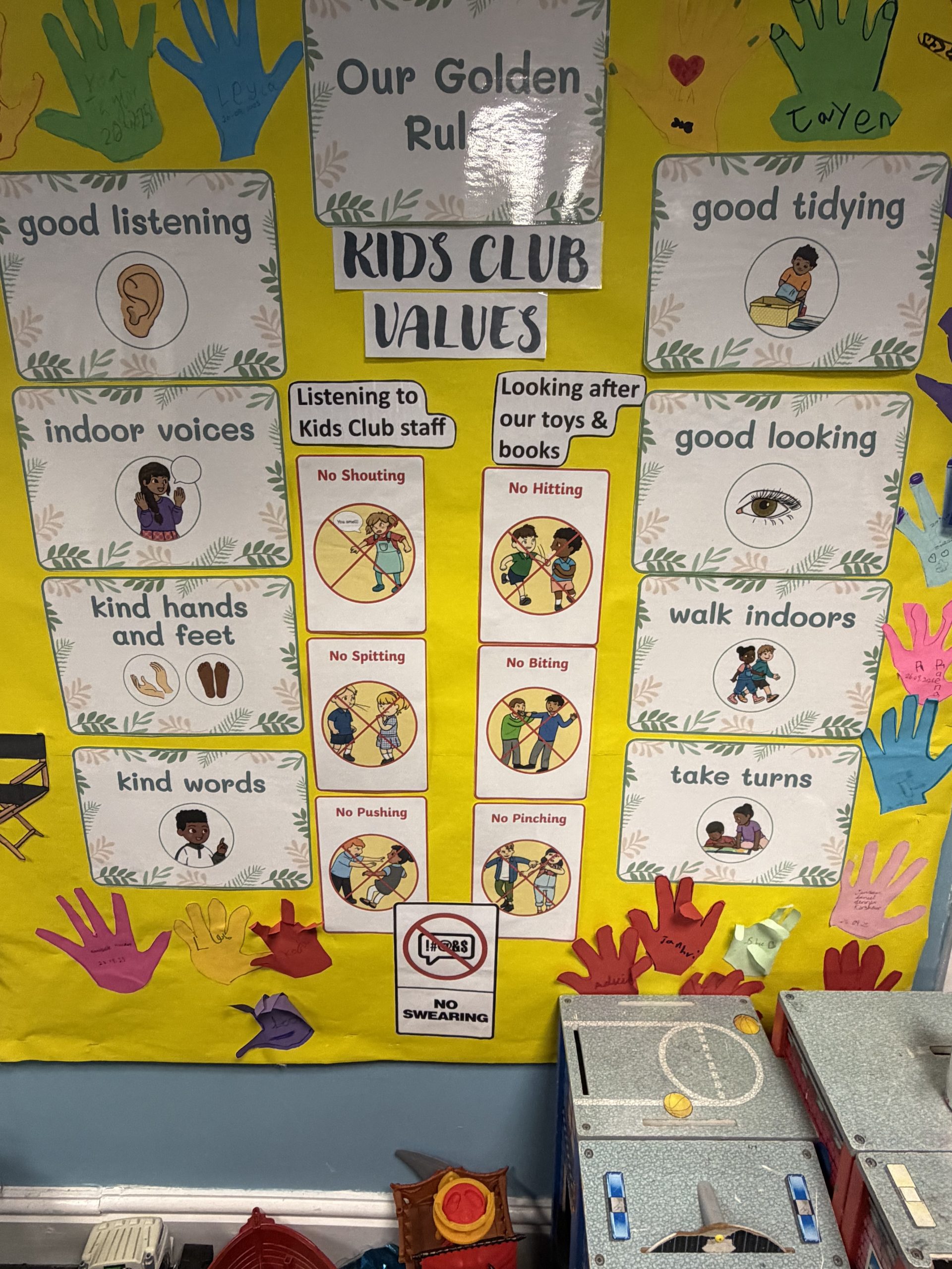 All children who attend our club have agreed to keep to the club’s Golden Values. These are pictured below, and we believe they are necessary for our club to run smoothly and harmoniously each day. If from time-to-time children aren’t behaving in the best way, we remind them of our values.